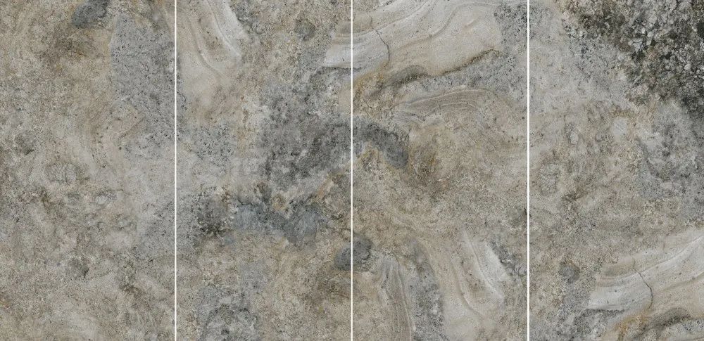 通体大理石瓷砖在瓷砖坯体上,颜色、肌理、功能无限,逼近天然石材岩层质变效果,纹理质感通透更强。